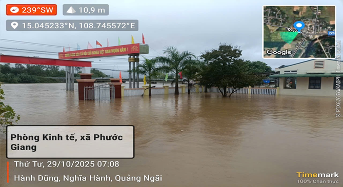Do ảnh hưởng của áp thấp nhiệt đới, trong tối ngày 28/10 đến sáng ngày 29/10, trên địa bàn xã Phước Giang, tỉnh Quảng Ngãi mưa rất to, lượng mưa đạt trên 170mm; mực nước sông Phước Giang và các nhánh sông Phước Giang dâng lên nhanh. Đến 9 giờ, ngày 29/10, trên địa bàn xã có 1.081 hộ bị cô lập hoàn toàn, 905 ngôi nhà bị nước ngập trên 0,5 mét, hàng trăm con gia cầm bị chết. Về thủy lợi: Sạt lở sông Phước Giang, đoạn từ cầu cây Sanh đi bến Lội, dài khoảng 1.000m, ước tính thiệt hại khoảng 1 tỷ đồng. Trôi đập bổi thôn Kim Thành, ước tính thiệt hại khoảng 200 triệu đồng. Vỡ kênh N13, thôn Tình Phú Nam, ước thiệt hại 300 triệu đồng, và đoạn bờ kè dọc sông Phước Giang hiện đang bị sạt lở, với chiều dài 1.000m.