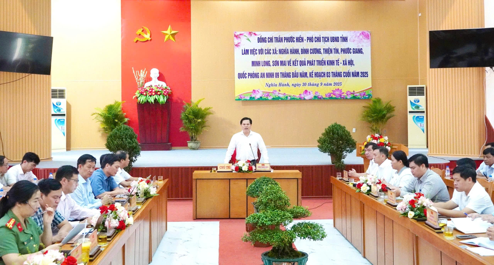 Phó Chủ tịch UBND tỉnh Trần Phước Hiền làm việc với các xã Phước Giang, Nghĩa Hành, Đình Cương, Thiện Tín, Minh Long và Sơn Mai về tình hình phát triển kinh tế, xã hội quốc phòng, an ninh trong 9 tháng năm 2025; kế hoạch 3 tháng cuối năm 2025