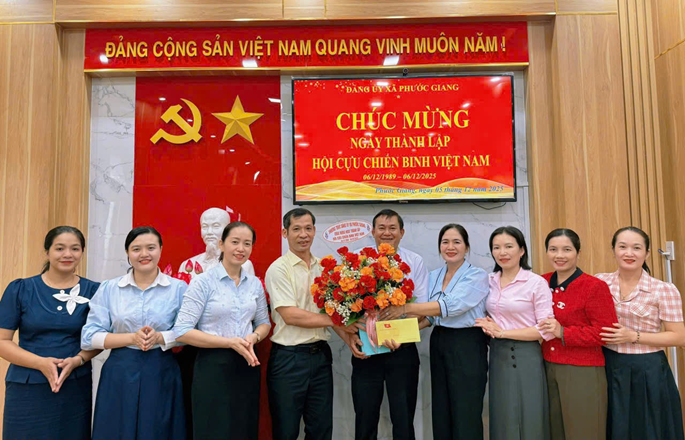 Nhân kỷ niệm 36 năm Ngày thành lập Hội Cựu chiến binh Việt Nam (6/12/1989 – 6/12/2025), sáng ngày 5/12, Thường trực Đảng ủy xã Phước Giang tổ chức gặp mặt, chúc mừng 36 năm Ngày thành lập Hội Cựu chiến binh Việt Nam .