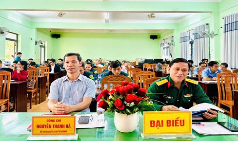 Phát biểu chỉ đạo tại Hội nghị, đồng chí Nguyễn Thanh Hà, Bí thư Đảng ủy, Chủ tịch HĐND xã nhấn mạnh: Ban chỉ huy quân sự xã xã tiếp tục tham mưu cho Cấp uỷ Đảng, Chính quyền địa phương lãnh đạo, chỉ đạo triển khai thực hiện toàn diện nhiệm vụ quốc phòng, quân sự địa phương. Duy trì nghiêm chế độ trực sẵn sàng chiến đấu. Nâng cao chất lượng nắm, dự báo tình hình và đề xuất xử lý các tình huống quốc phòng an ninh trên địa bàn đúng pháp luật, đúng quy định của Bộ Quốc phòng, Quân khu, Bộ chỉ huy quân sự tỉnh. Tăng cường công tác giáo dục chính trị, tư tưởng cho cán bộ, chiến sỹ kiên định, vững vàng, tuyệt đối trung thành với Đảng, Nhà nước và Nhân dân; nhận thức sâu sắc nhiệm vụ của lực lượng vũ trang, nâng cao tinh thần cảnh giác, có ý chí quyết tâm cao, sẵn sàng nhận và hoàn thành thắng lợi mọi nhiệm vụ được giao. Phát huy vai trò nòng cốt trong xây dựng nền quốc phòng toàn dân, thế trận quốc phòng toàn dân với thế trận an ninh nhân dân, “thế trận lòng dân” vững chắc, ứng phó hiệu quả với các thách thức an ninh truyền thống và phi truyền thống. Thực hiện tốt chính sách hậu phương quân đội, tổ chức xây dựng chi bộ, Ban chỉ huy quân sự xã hoàn thành xuất sắc nhiệm vụ, xã đạt vững mạnh về quốc phòng.