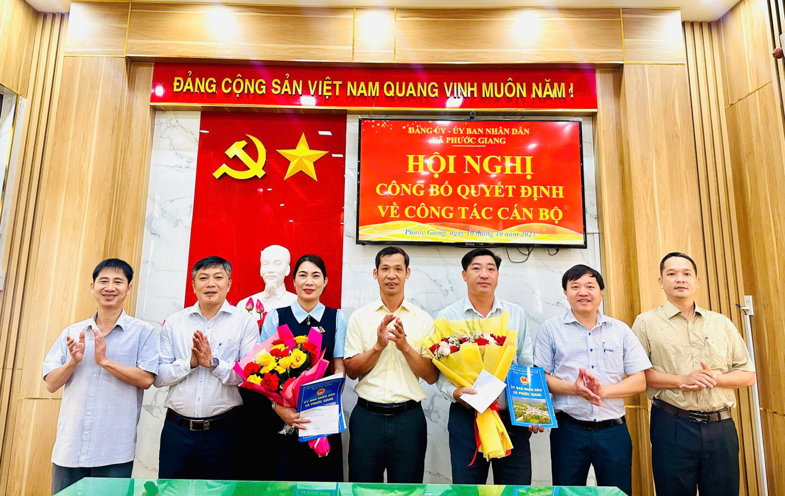 Tiếp đó, Trưởng Phòng Văn hóa - Xã hội xã Phước Giang công bố các quyết định của UBND xã Phước Giang về việc tiếp nhận đồng chí Phạm Minh Thiên - Chuyên viên Phòng Văn hóa – Xã hội, UBND xã Thiện Tín và phân công đến nhận công tác tại Phòng Văn hóa – Xã hội xã Phước Giang kể từ ngày 07/10/2025; Điều động đồng chí Phạm Ngọc Quang - Chuyên viên Trung tâm Phục vụ Hành chính công đến nhận công tác tại Phòng Kinh tế kể từ ngày 10/10/2025. Điều động đồng chí Nguyễn Thị Kim Huyền - Chuyên viên Văn phòng HĐND&UBND xã đến nhận công tác tại Phòng Văn hóa - Xã hội kể từ ngày 10/10/2025. Điều động đồng chí Đoàn Quốc Việt - Chuyên viên Văn phòng HĐND&UBND xã đến nhận công tác tại Phòng Văn hóa - Xã hội kể từ ngày 10/10/2025.