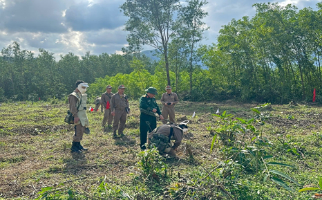 Đội Rà phá bom mìn Lữ đoàn 239/Binh chủng công binh đang thực hiện nhiệm vụ xử lý, làm sạch bom mìn vật nổ (BMVN) còn sót lại sau chiến tranh trên địa bàn xã Phước Giang.