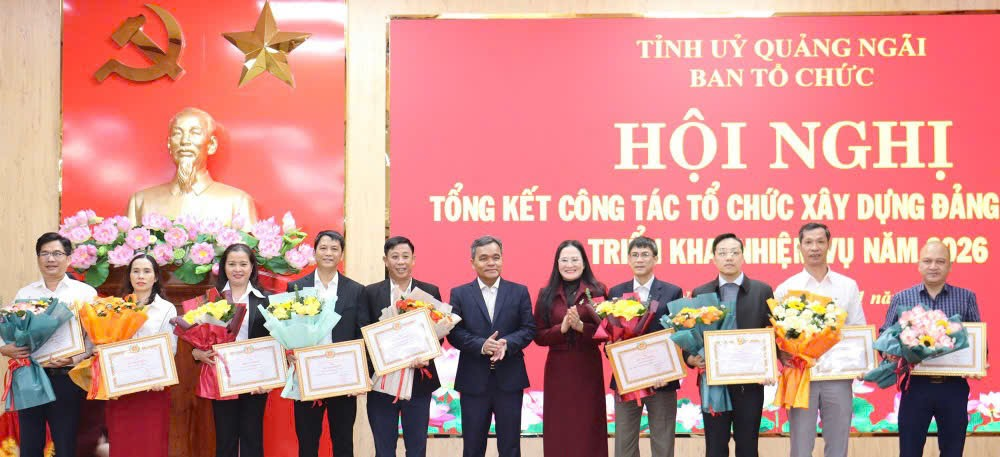 Trao Bằng khen của Ban Thường vụ Tỉnh ủy Quảng Ngãi tặng các đảng bộ trực thuộc Tỉnh ủy và cơ quan chuyên trách tham mưu, giúp việc Tỉnh ủy đạt tiêu chuẩn “Hoàn thành xuất sắc nhiệm vụ” tiêu biểu năm 2025. ( Hình Hiển Cừ)