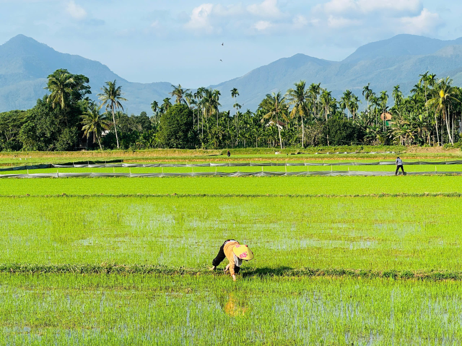 Hình ảnh người dân xã Phước Giang chăm sóc lúa Đông Xuân