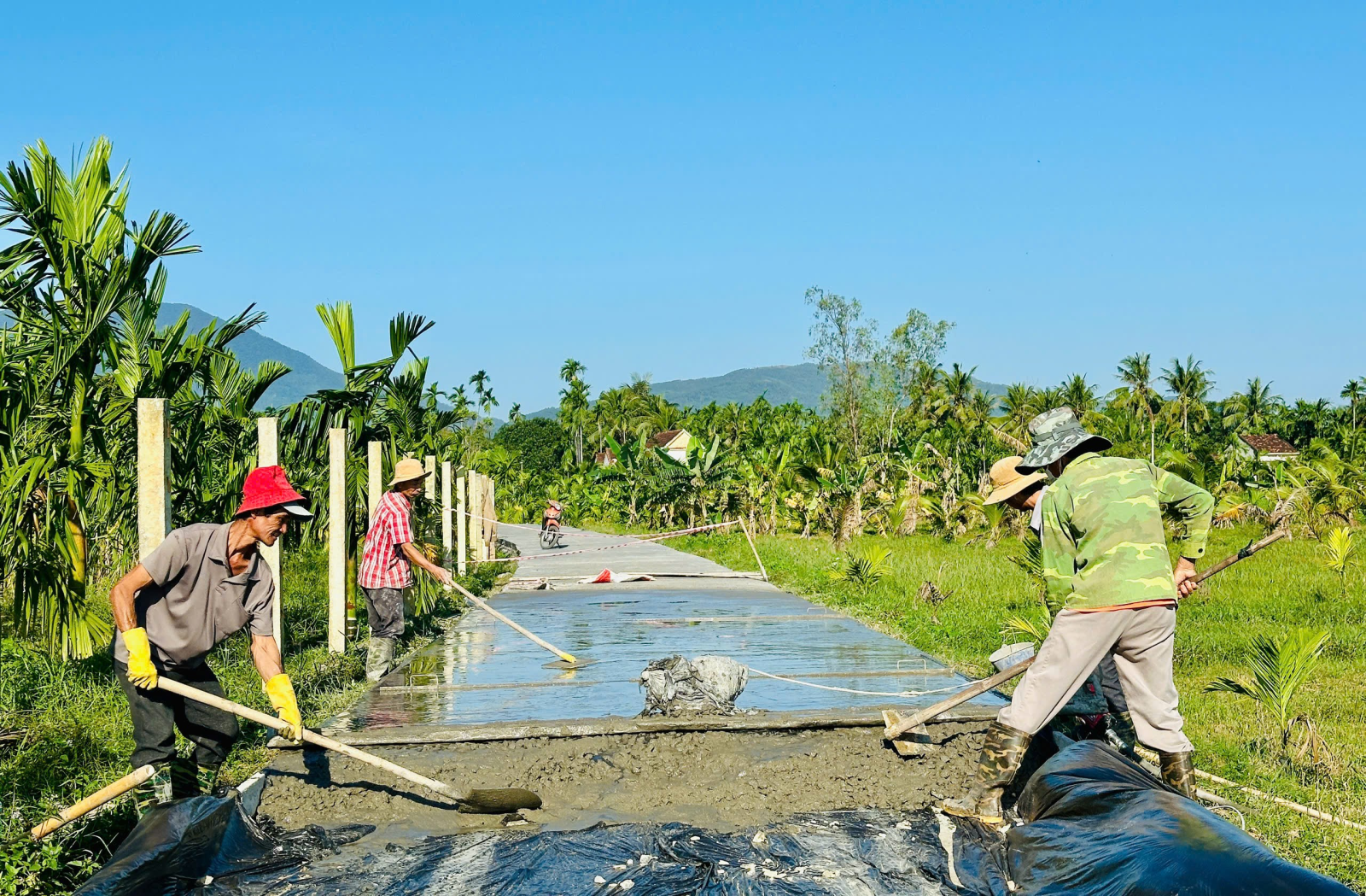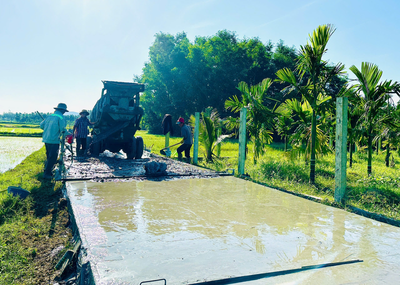 Hình ảnh làm đường bê tông từ thôn Long Bàn Nam đi thôn Đông Trúc Lâm thuộc tuyến Ngã ba Gò Gai - Cầu Nước Nóng (ĐH.49B)