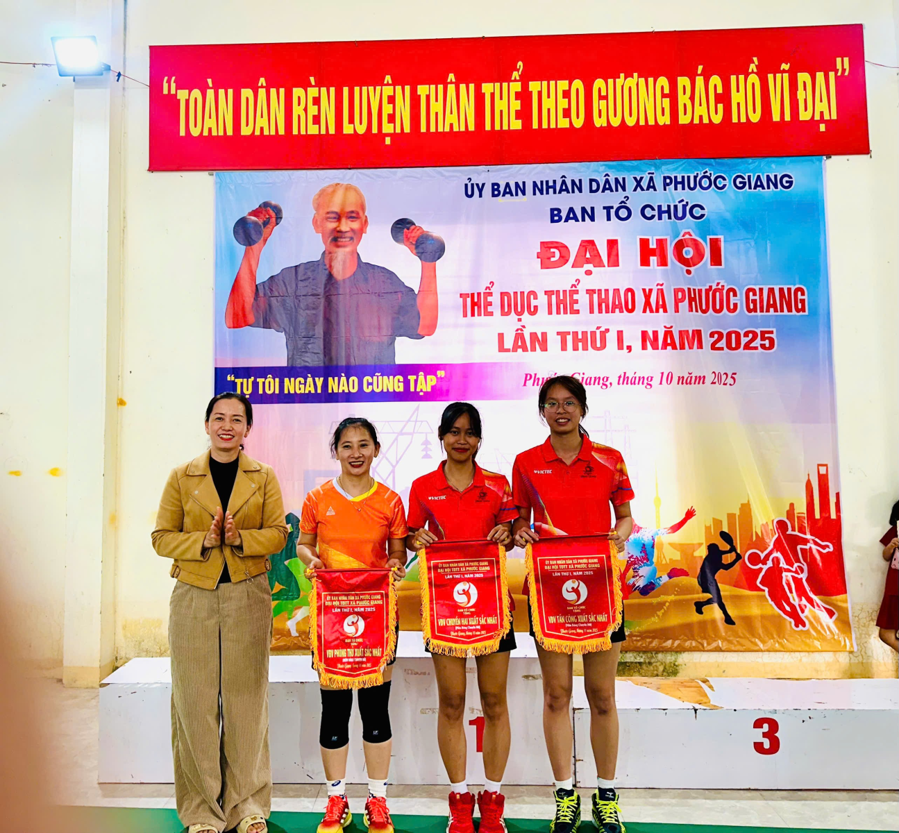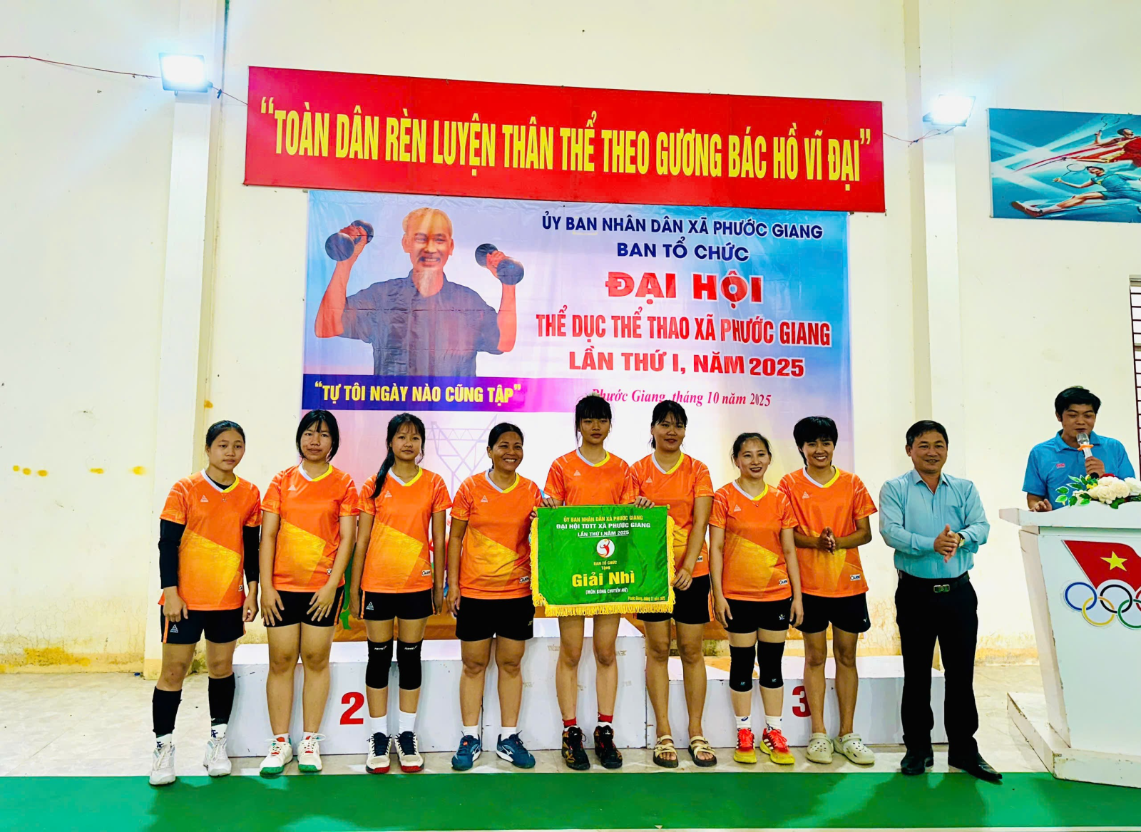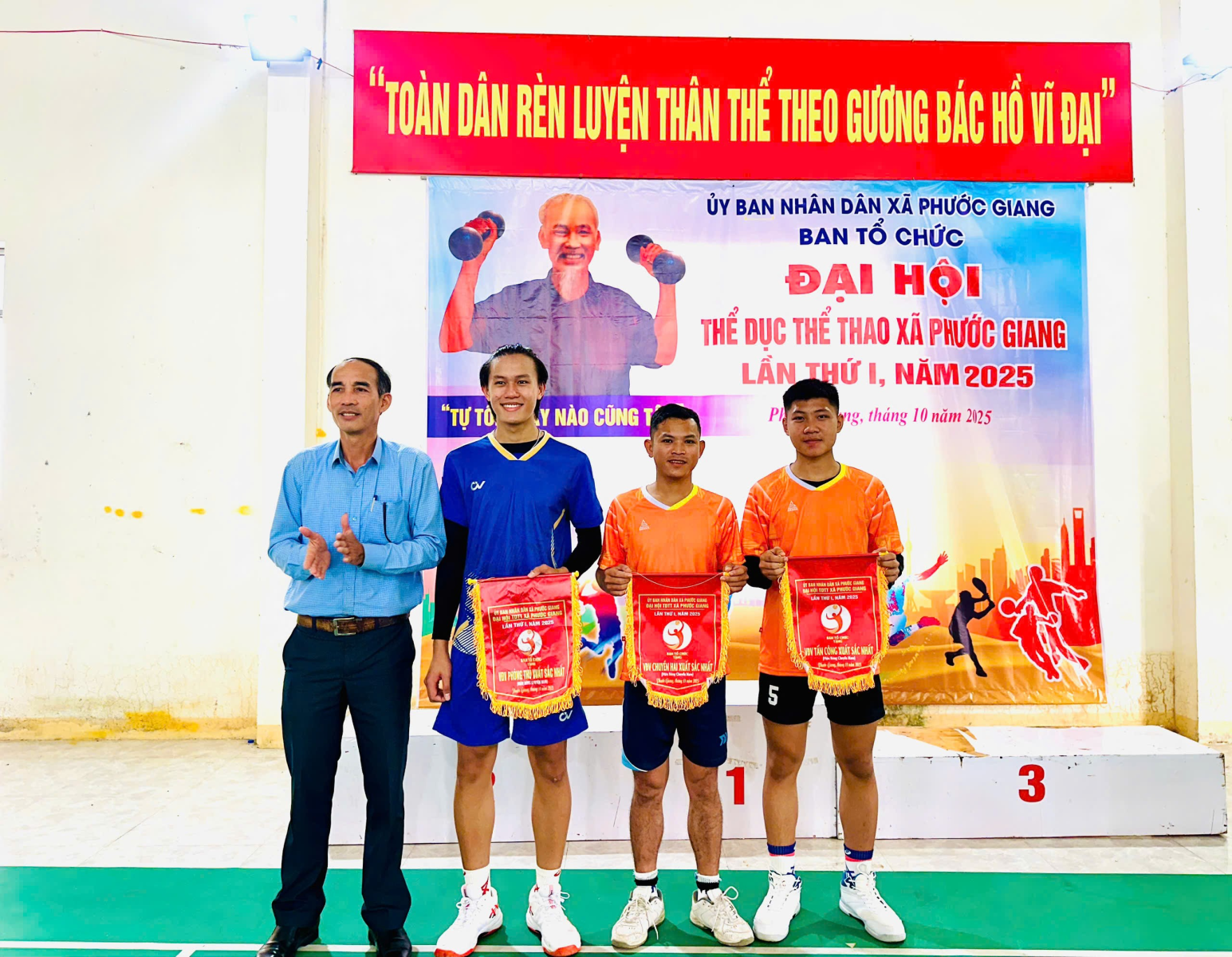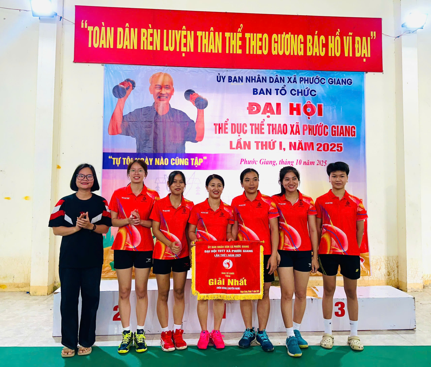Sáng ngày 07/12/2025, Ban tổ chức Đại hội Thể dục Thể thao xã Phước Giang tổ chức bế mạc và trao giải môn bóng chuyền nam và bóng chuyền nữ trong khuôn khổ Đại hội thể dục thể thao xã lần thứ I năm 2025. Giải đấu thu hút trên 60 vận động viên đến từ các thôn trên địa bàn xã tham gia với 6 trận. Qua các trận thi đấu, đã mang đến những trận đấu hấp dẫn, kịch tính, thể hiện tinh thần thể thao cao thượng và sự tập luyện kỹ của các vận động viên. Giải được thi đấu với 02 nội dung gồm nội dung bóng chuyền nam và nội dung bóng chuyền nữ theo thể thức vòng tròn một lượt tính điểm.