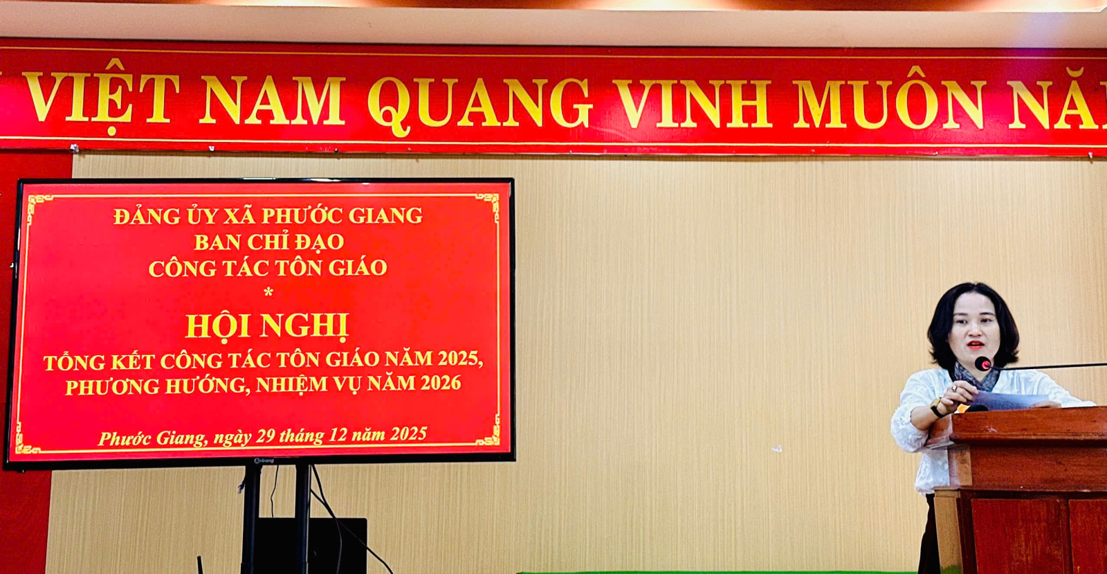 Sáng 29/12; xã Phước Giang tổ chức hội nghị tổng kết công tác tôn giáo năm 2025, triển khai nhiệm vụ năm 2026. Dự Hội nghị có các đồng chí Phan Công Huân - Phó Bí thư Thường trực Đảng ủy xã; Nguyễn Duy Diễn - Phó Chủ tịch Thường trực UBND xã, lãnh đạo các ban, phòng.